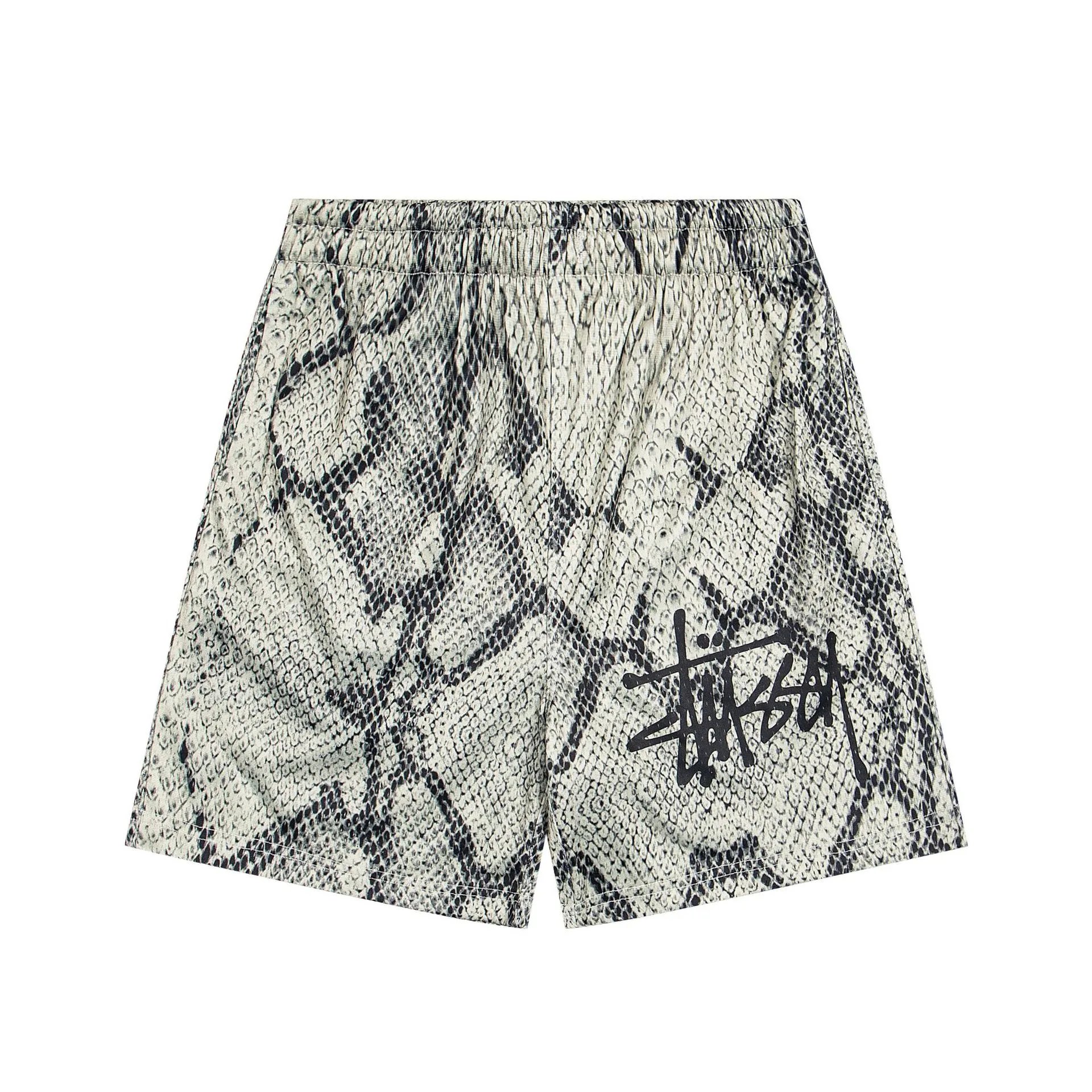 【上九路G】跨境美式潮牌字母印花蛇纹短裤宽松抽绳休闲五分裤男
