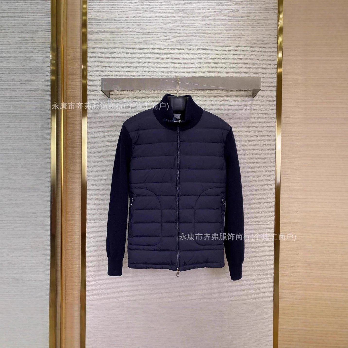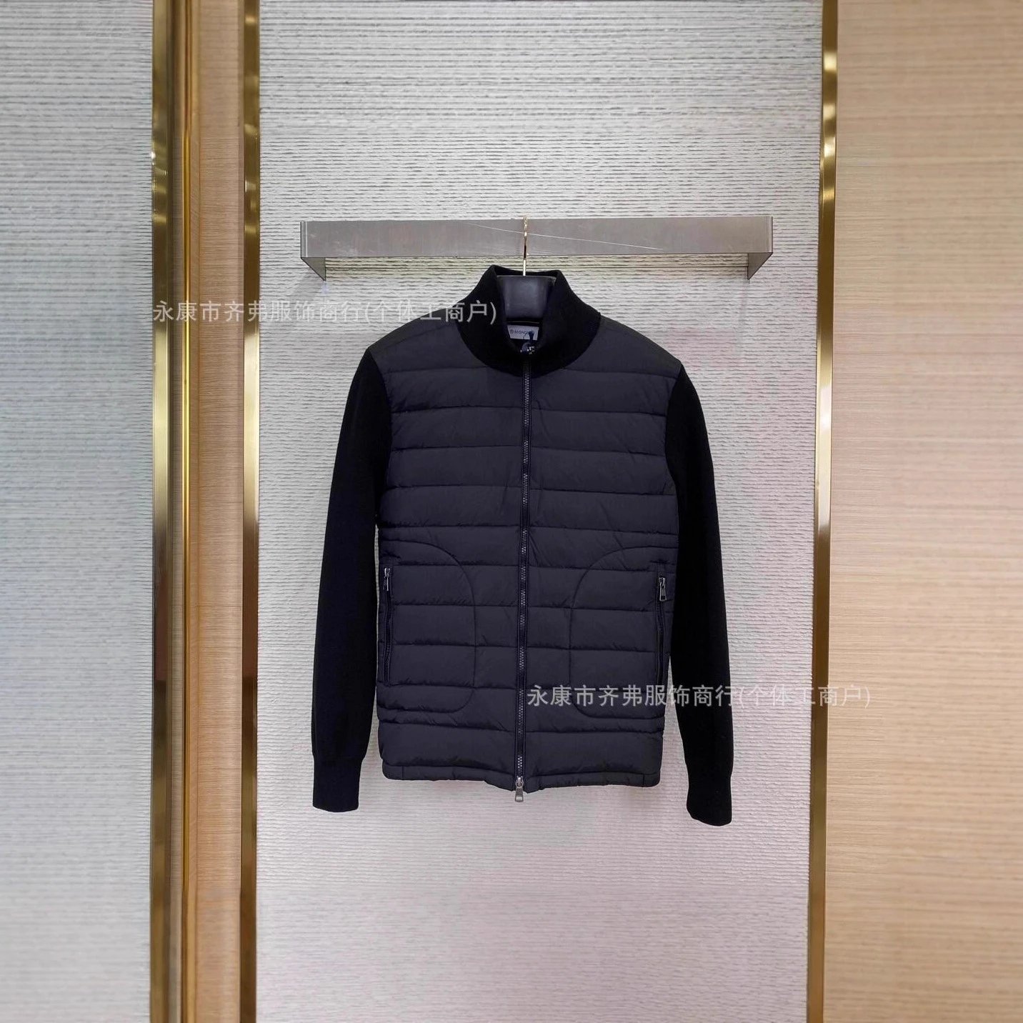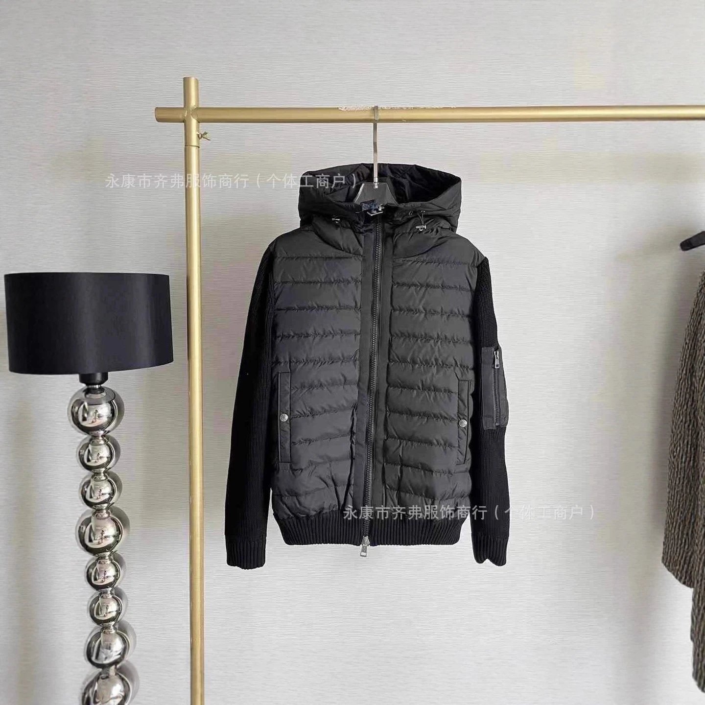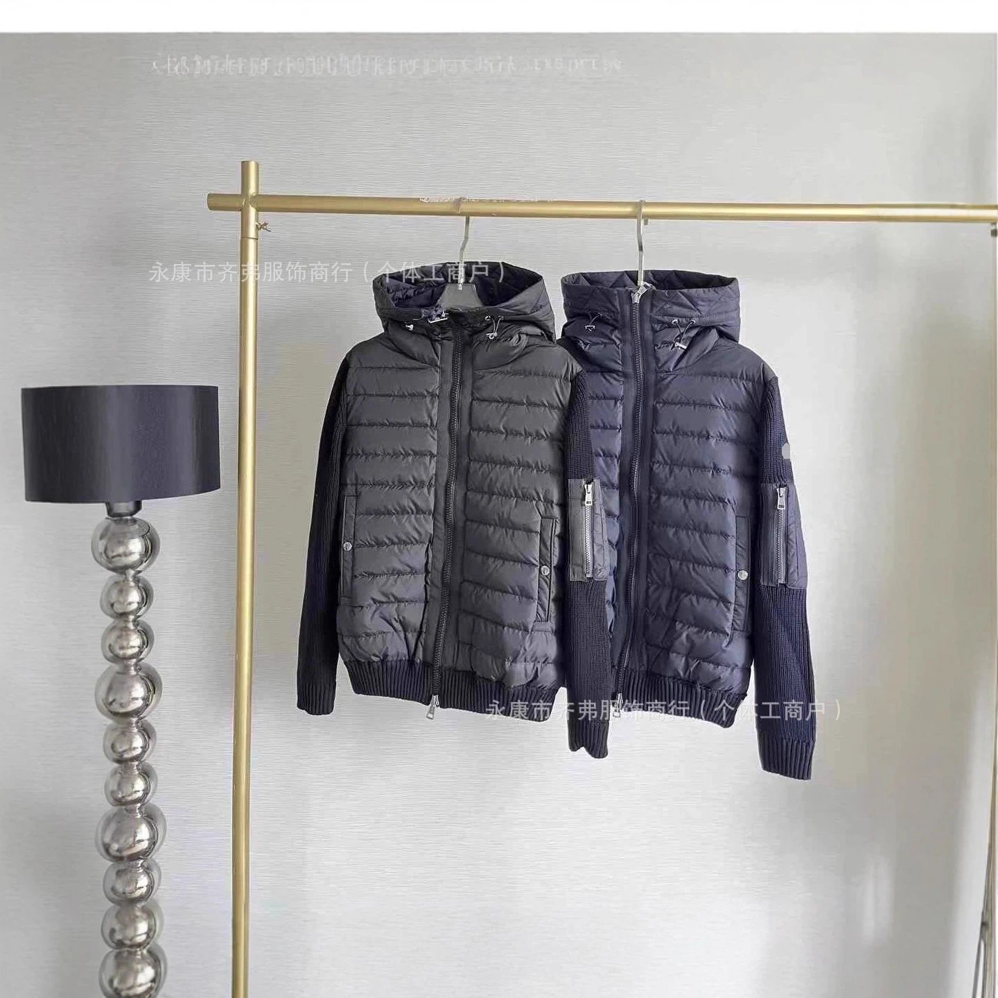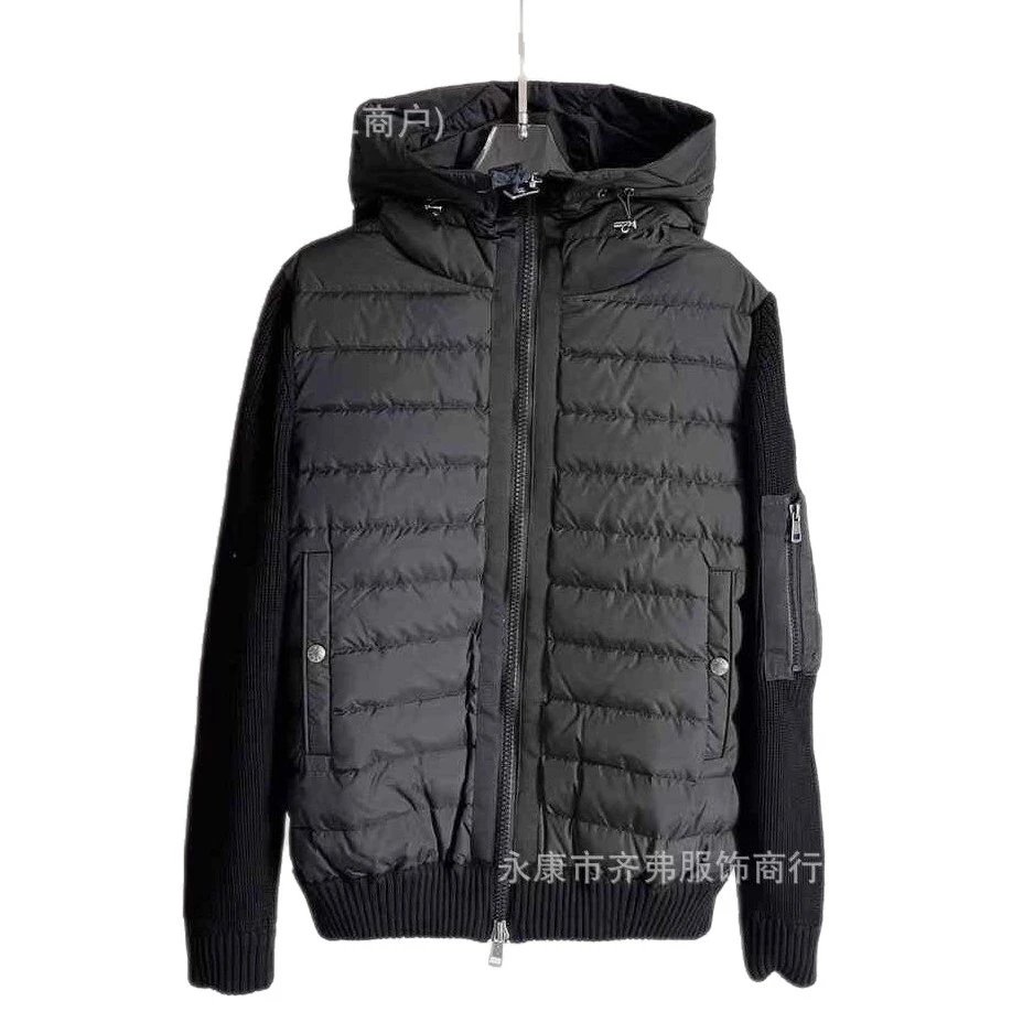 欧洲站外贸新款M家针织拼接羽绒服 现货连帽休闲时尚男女同款外套